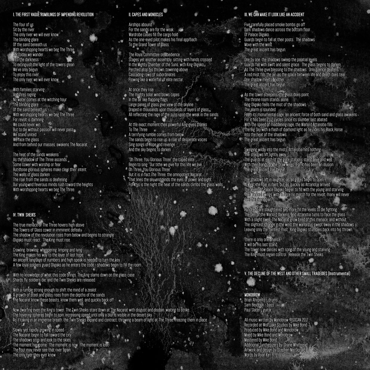 As our sense of time becomes more and more distorted, Ottawa's Monobrow present a 45-minute respite from the new abnormal, in the form of their fifth opus, A Decorative Piece of Time on Trill or be Trilled Records. Monobrow have continued to further their aural sensibilities, combining both rawness and intricacy into a unique alchemy of doom, psych, progressive, and stoner styles. ... more