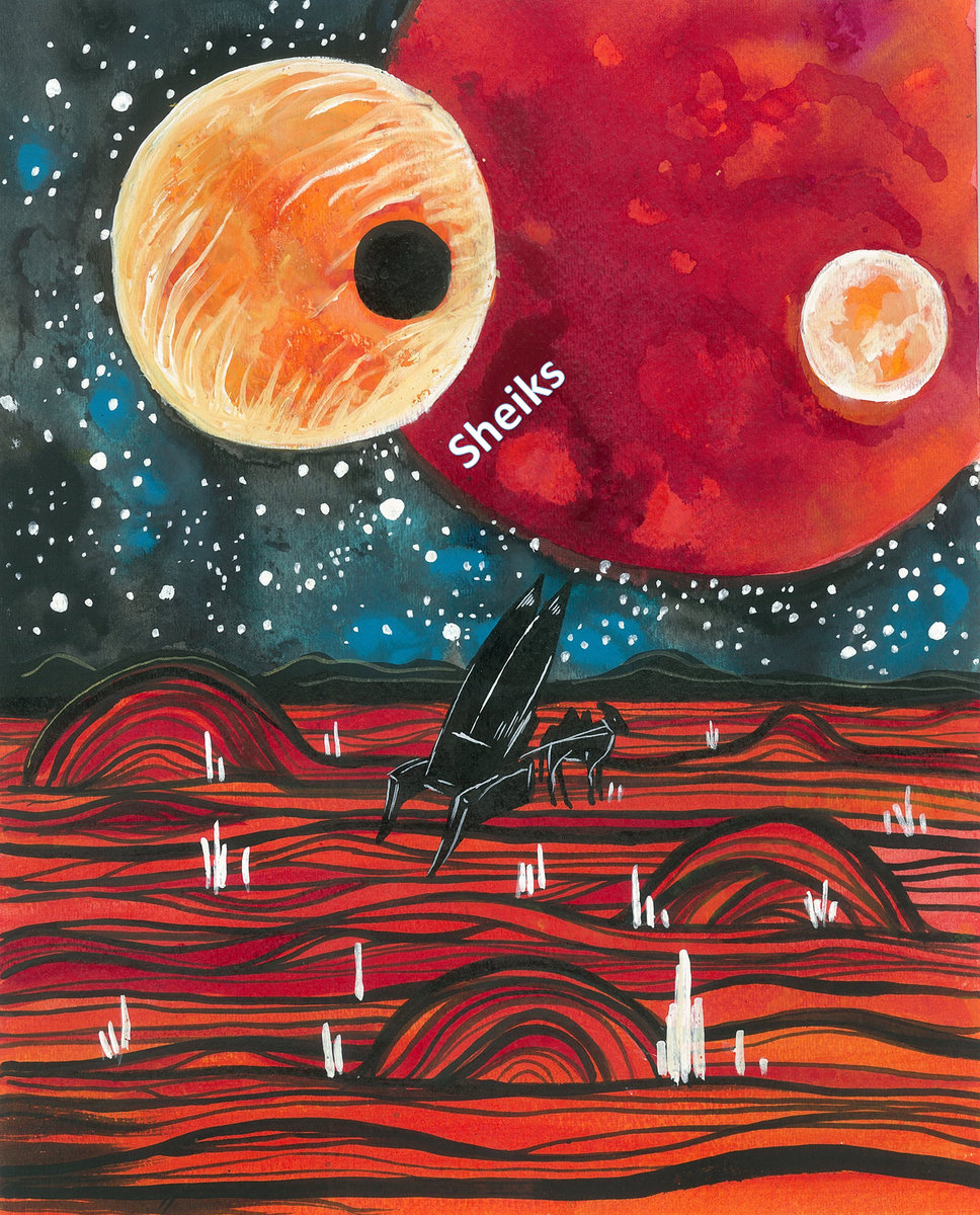 As if taking in an immense breath, the Twin Sheiks expand and contract, throwing a beam of light at The Three, freezing them in place.